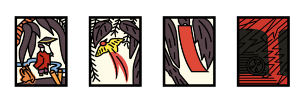 11月の「柳」の札。これを見て「柳といえば春じゃないの?」と思った方は、鋭いです!